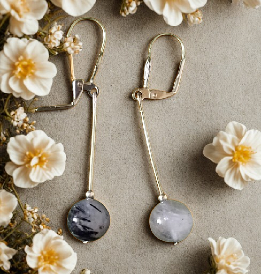 Boucles d'oreilles quartz à inclusion de tourmaline